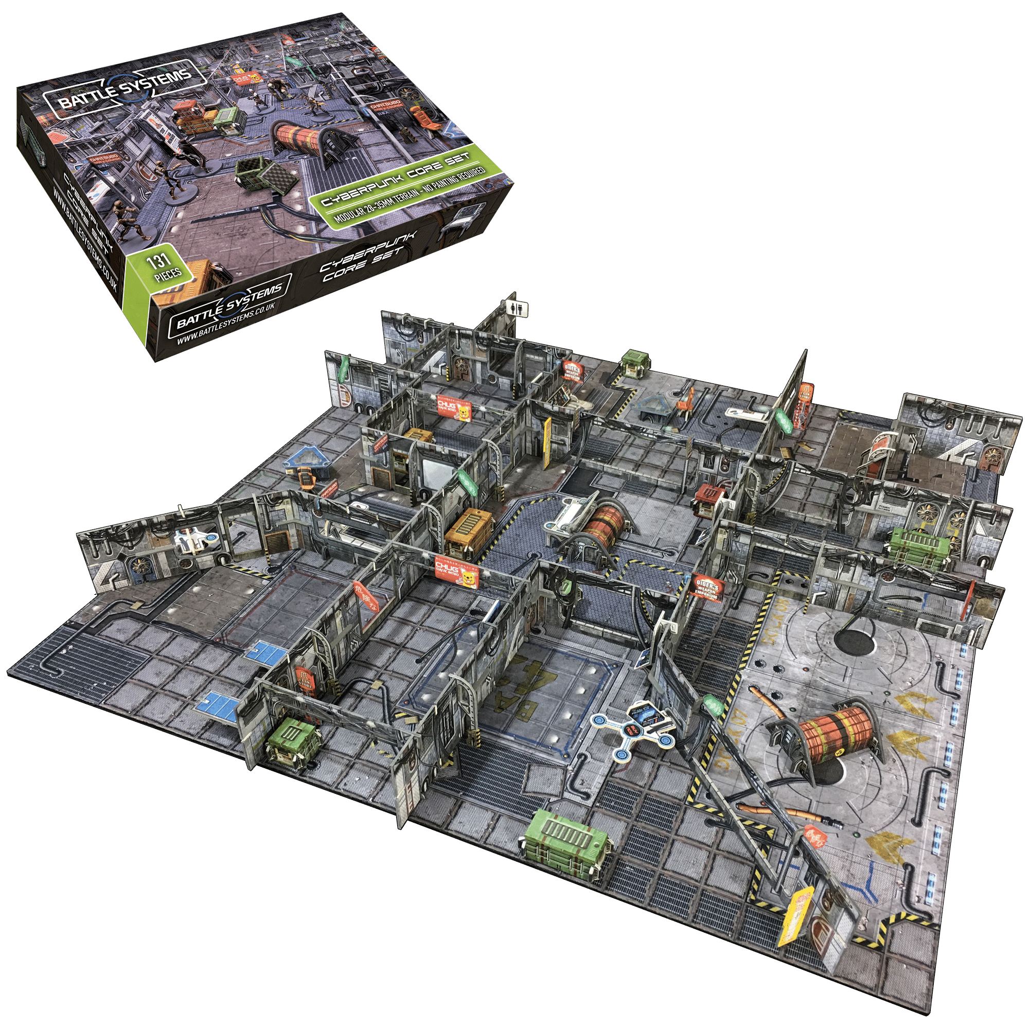 Cette boîte contient tout ce dont vous avez besoin pour construire un plateau de jeu à un seul niveau couvrant une zone allant jusqu’à 2′x2′ /(60cm x 60cm) ou plus, adaptée à tous les jeux de science-fiction de 28 à 35 mm.