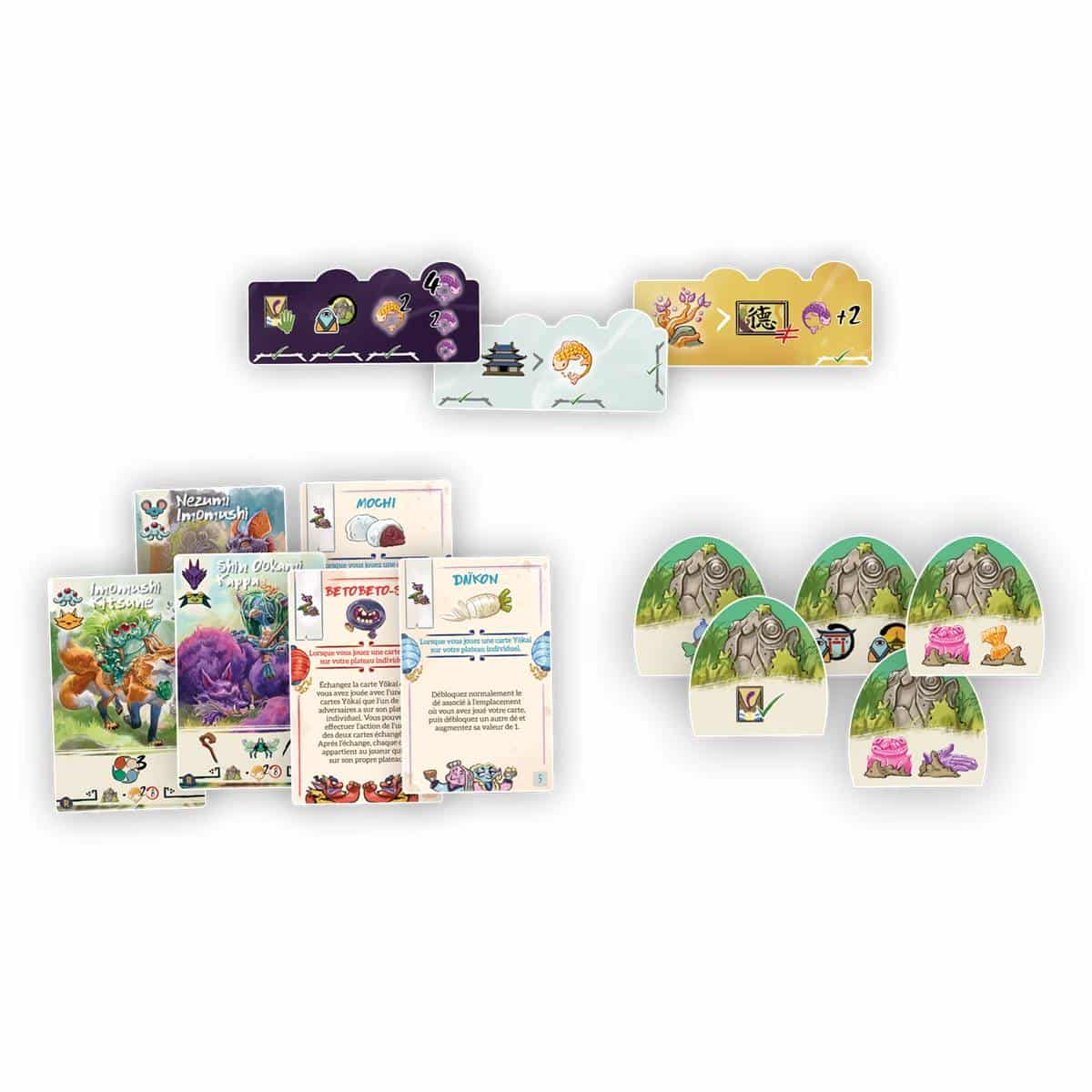 Voulez-vous le menu complet ? Ajoutez-les tous ! Voulez-vous essayer une bouchée ? Ajoutez-en un seul et profitez du banquet. Les modules incluent de nouvelles roches Iwakura, de nouvelles cartes Yokai et trois nouveaux types de lac Kodama, ainsi qu’un nouveau jeu de cartes qui permettra aux joueurs d’activer certains effets pendant le jeu, comme modifier les résultats des dés ou gagner beaucoup de points.
