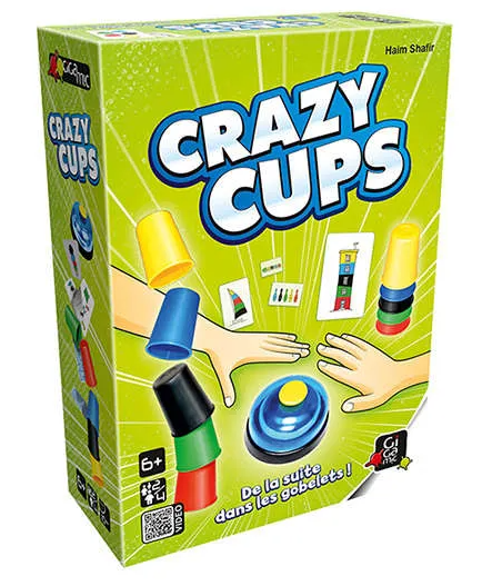 Dans Crazy Cups, chaque joueur reçoit cinq gobelets en cinq couleurs. A chaque début de tour, une carte combinant cinq éléments reprenant les mêmes couleurs que les gobelets est révélée. Les joueurs doivent alors aligner ou empiler rapidement leurs gobelets afin de reproduire exactement la même disposition que celle des éléments de la carte. Attention, il est important de bien suivre l’ordre et le sens des couleurs ! Dès qu’un joueur a terminé, il appuie vite sur la sonnette. Le plus rapide à réaliser correctement sa série remporte la carte en jeu et c’est reparti pour un tour. Restez bien attentifs et ne perdez pas de vue votre objectif car pour gagner à Crazy Cups, il faut avoir de la suite dans les gobelets !
