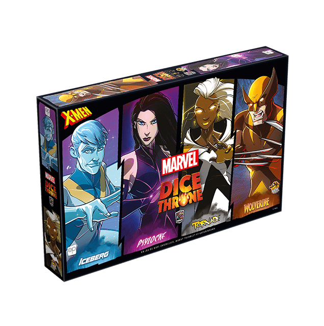 Dans Marvel Dice Throne X-Men , vous devenez l’un des huit héros les plus célèbres des X-Men, dont : Cyclope, Gambit, Malicia, Jean Grey, Iceberg, Psylocke, Tornade et Wolverine !