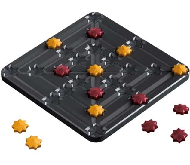 QOMET est un jeu où chaque mouvement compte. Sur un plateau composé de 25 emplacements reliés par des lignes, deux joueurs s’affrontent pour former un carré parfait avec leurs étoiles. Accessible dès les premières minutes, Quomet offre une profondeur stratégique qui séduira les amateurs de jeux épurés.