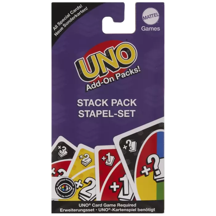Uno : Stack Pack est une extension pour l’incontournable jeu de défausse Uno qui ajoute des cartes supplémentaires pour accumuler les pioches de cartes !